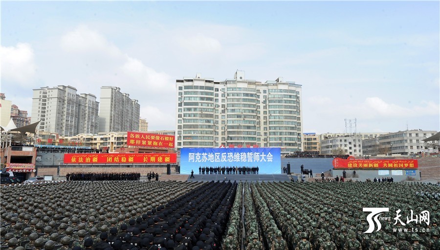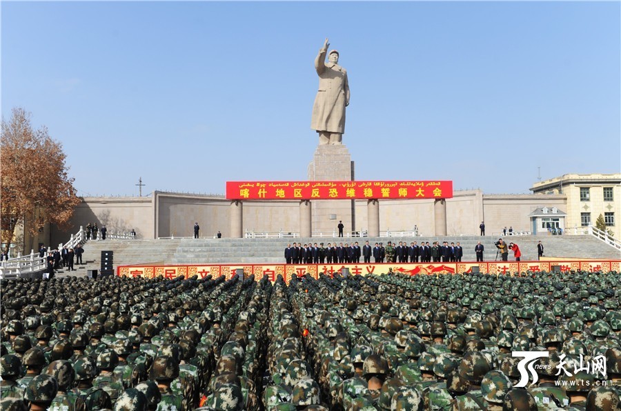 捍衞法律、打擊暴恐,保衞人民、維護穩定。據天山網2月28日報道,27日上午,新疆自治區在烏魯木齊舉行反恐維穩誓師大會,宣示全區各族幹部羣眾堅定不移貫徹社會穩定和長治久安總目標的堅定決心,展示各維穩力量忠誠勇敢、無堅不摧、敢打必勝的強大戰鬥力,彰顯新疆各族人民同仇敵愾、堅決戰勝暴恐分子的共同意願,進一步動員全區各族幹部羣眾在以習近平同志為核心的黨中央堅強領導下團結一心、眾志成城,全力打贏反恐維穩鬥爭。