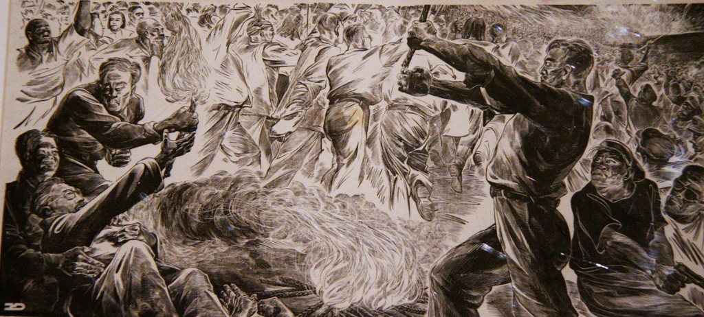 著名木刻家荒煙為紀念聞一多烈士而創作的版畫《一個人倒下,千萬人站起來!》