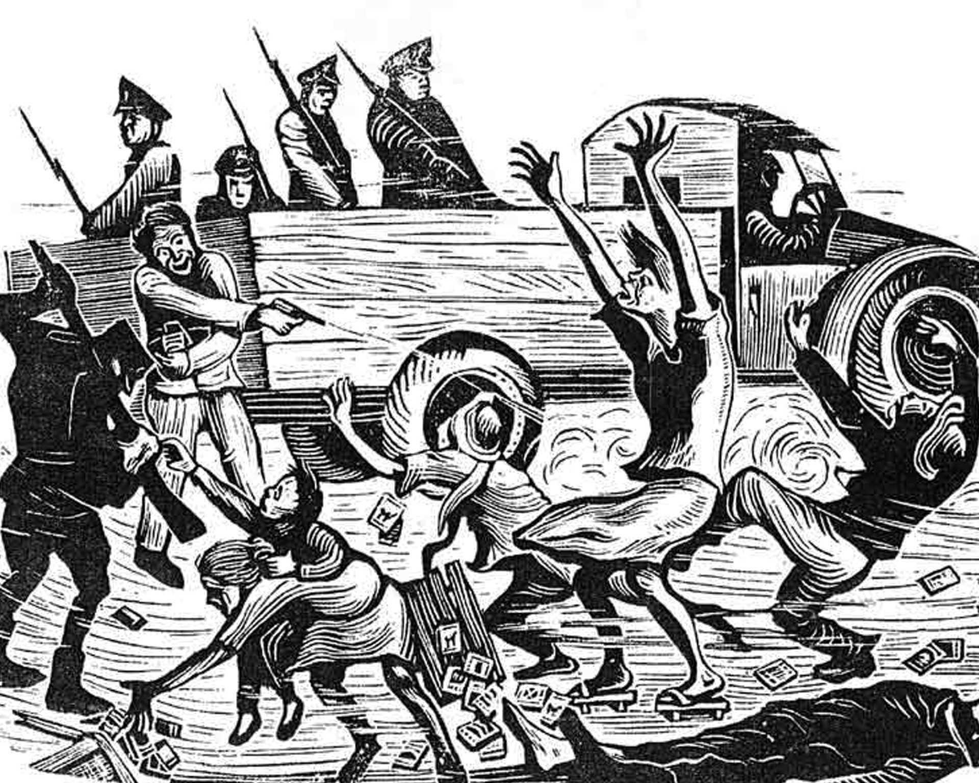 黃榮燦木刻版畫《恐怖的檢查——台灣“二二·八事件”》,1947年。