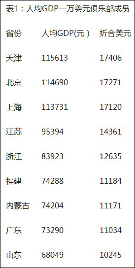 人均GDP達到上萬美元是一個重要標誌。一般來説,這標誌着經濟社會的整體發展達到中等發達國家水平。不過,目前我國這些人均GDP超過1萬美元的省份,離真正的發達狀態仍有一定距離。