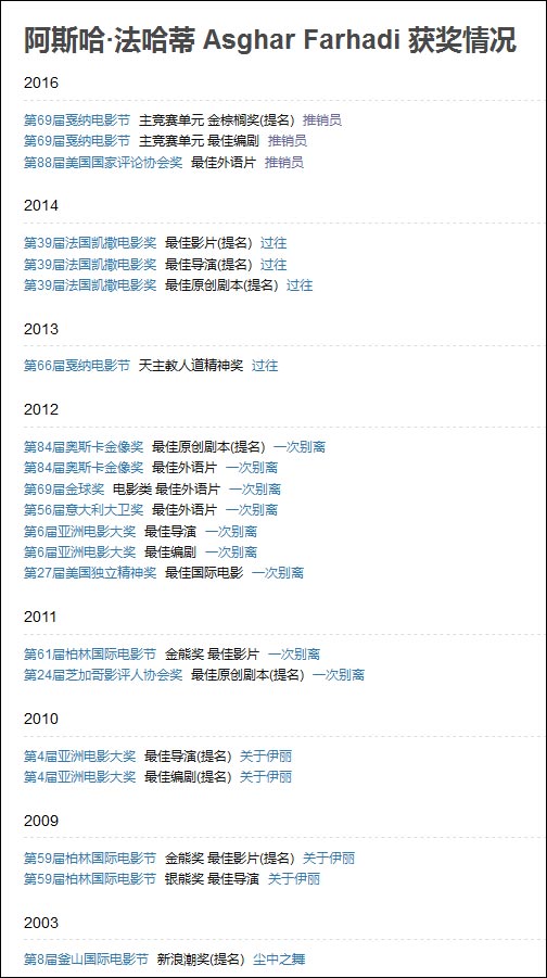 伊朗導演法哈蒂是各種國際電影節的常客,他憑藉2011年的影片“一次別離”斬獲61屆柏林電影節金熊獎、第69屆金球獎最佳外語片和第84屆奧斯卡最佳外語片。該片講述一名伊朗女性慾移民西方,導致其家庭遭遇一系列道德困境的故事。