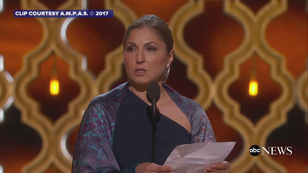 伊朗裔美國人安薩里代法哈蒂出席頒獎禮並宣讀聲明