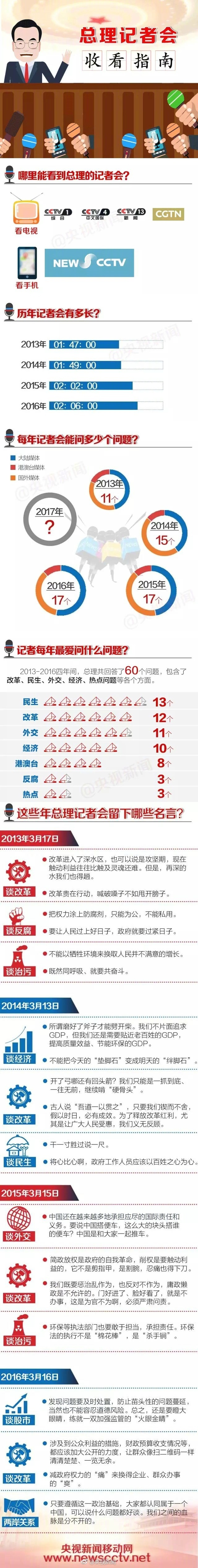 李克強今天上午會見中外記者 收好這份收看指南 2017-03-15 3月15日,李克強總理今天上午會見中外記者,@央視新聞 特地整理一份份收看指南!記者們最關心什麼問題,看總理記者會又有哪些門道?一看便知道。