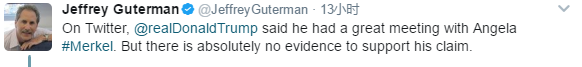 “特朗普在推特説和默克爾有愉快的會晤,然而我們完全沒有發現任何證據來支撐他的聲明。”