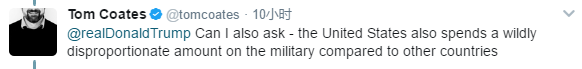“順便我想問,為什麼和其他國家相比,美國會花費如此龐大的、不成比例的軍事開支?”