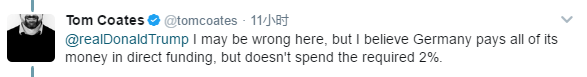 “我可能有錯,但我相信德國支付了所有的直接經費,但沒有支出需要的2%。”