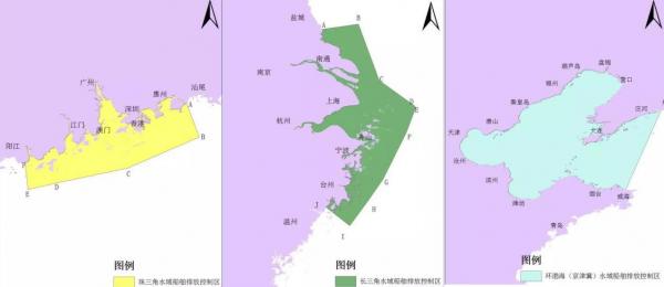 珠三角、長三角、環渤海(京津冀)水域船舶排放控制區範圍