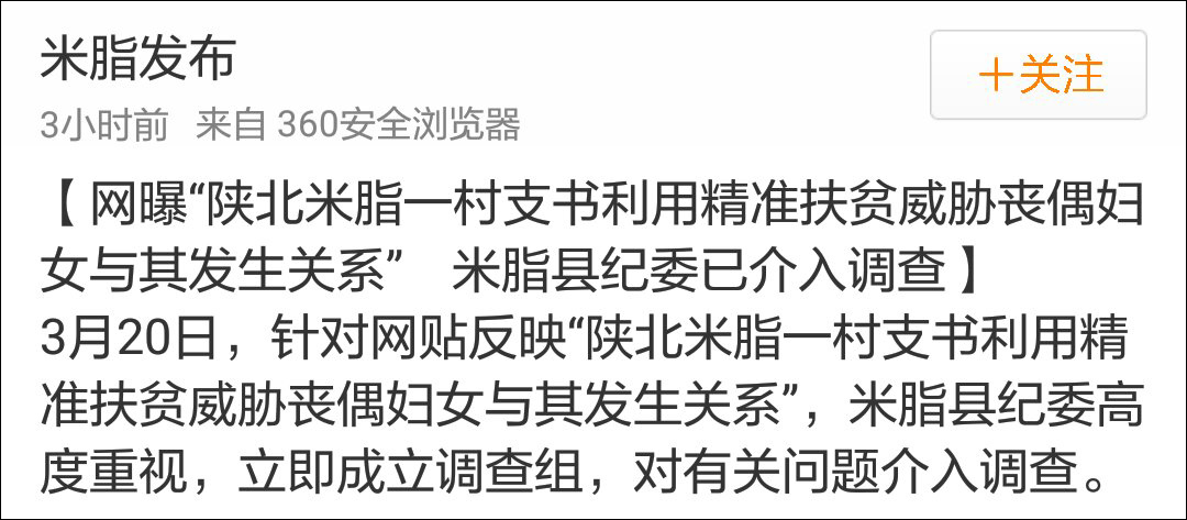陝西米脂一村支書被舉報用精準扶貧威脅婦女與其發生關係 當地調查