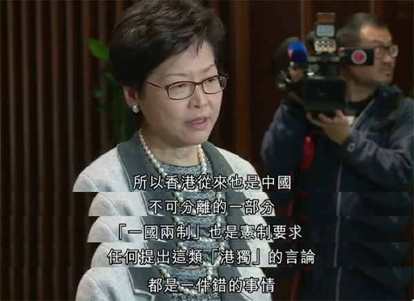 林鄭月娥接受採訪時表示反對“港獨”