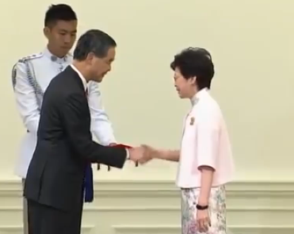 時任香港特首梁振英為林鄭月娥頒發“大紫荊勳章”