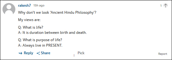 我的看法是 問:什麼是生活?答:是出生與死亡之間的時間