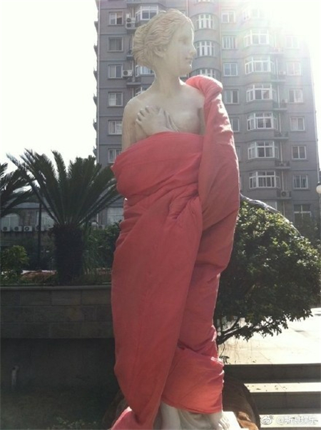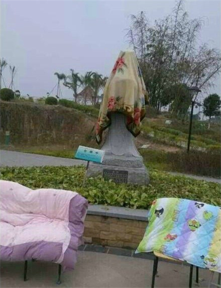 沒有雕像不要緊,到處都可以鋪上密密麻麻的被子……