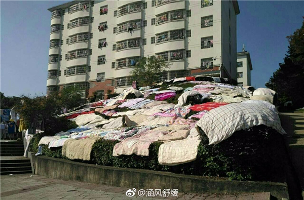【文/觀察者網 高雪瀅】話説,長沙好不容易出太陽了,湖南大學官微分享了他們學校學生曬被子的圖片: