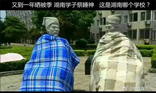 這二位夫子可是湖大學子的御用曬被師傅,造型多樣: