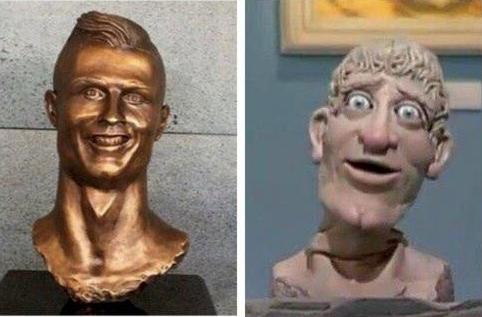C羅估計怎麼都想不到,銅像的畫風是這樣的。