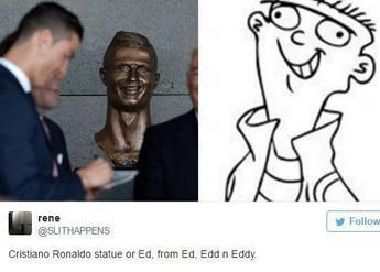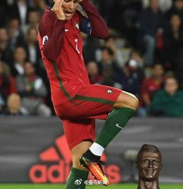 有球迷吐槽這是C羅30年之後的銅像,還有人稱這個銅像神似表情包,簡直有毒。