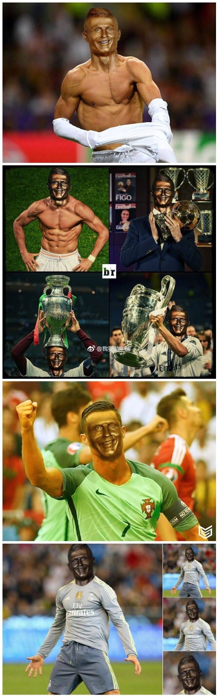 腦洞大開的球迷們開始了新一輪瘋狂的創作,紛紛把銅像P到C羅以前的照片裏,感覺像換了個人似的。