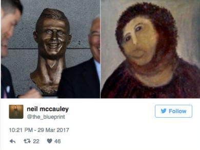 C羅看了會流淚 “C羅機場”雕像被網友吐槽辣眼睛