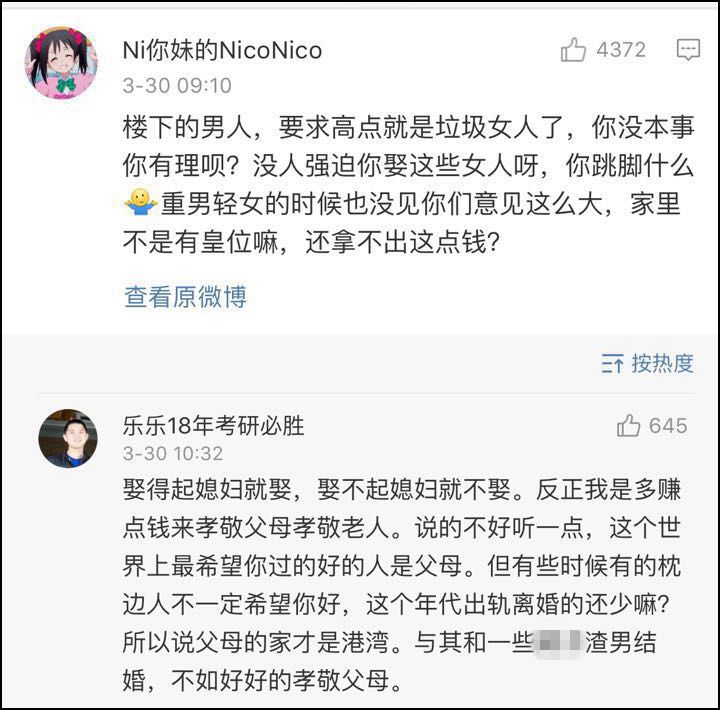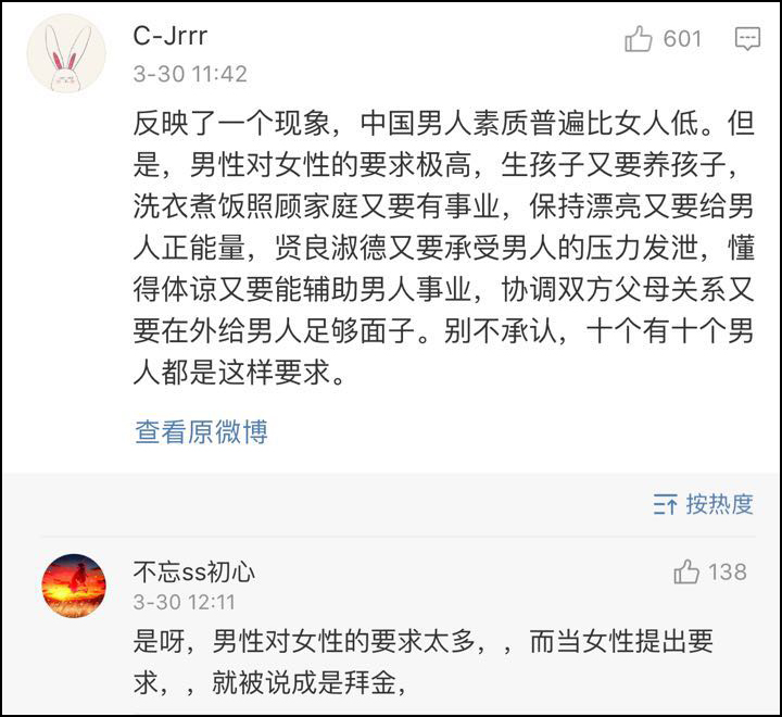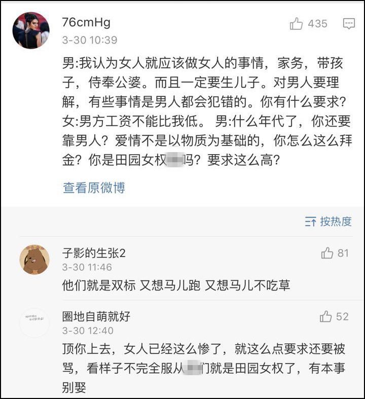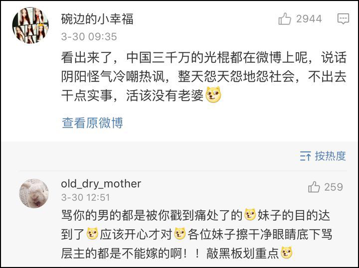 這個話題引爆了微博,男女之間開始“互噴”。