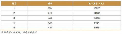 對男性收入要求排名前五的城市