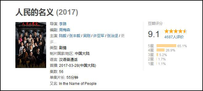 《人民的名義》可以説開創了近年來“主旋律”電視劇的尺度之最。