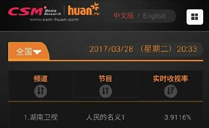 根據廣播電視受眾研究機構索福瑞(CSM)的數據,該電視劇全國網收視破2。
