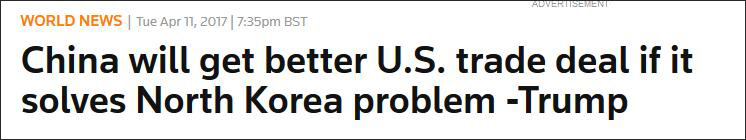 不過,特朗普把朝鮮和貿易問題明確掛鈎的説法暗示,**與其説總統要採取單方面行動,不如説他可能更想尋求從中國得到東西。**由於美國在貿易問題上的施壓,中國在首腦會議上提出了改進兩國貿易關係的百日計劃。