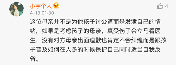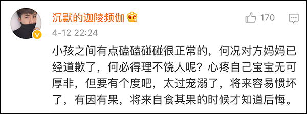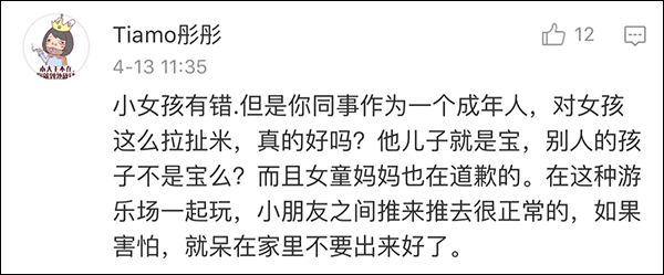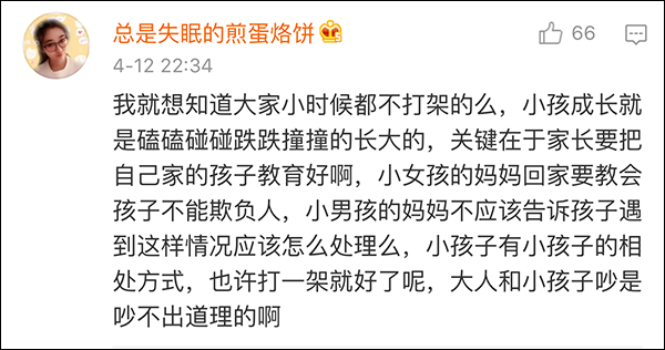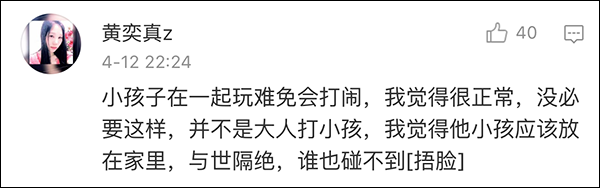 有網友稱,公共場合下,小孩之間的磕磕碰碰難以避免,對方女孩母親已道歉,沒必要得理不饒人。