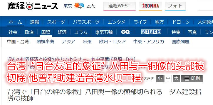 八田與一雕像被“砍頭”一事,立刻引起了日本媒體的關注。