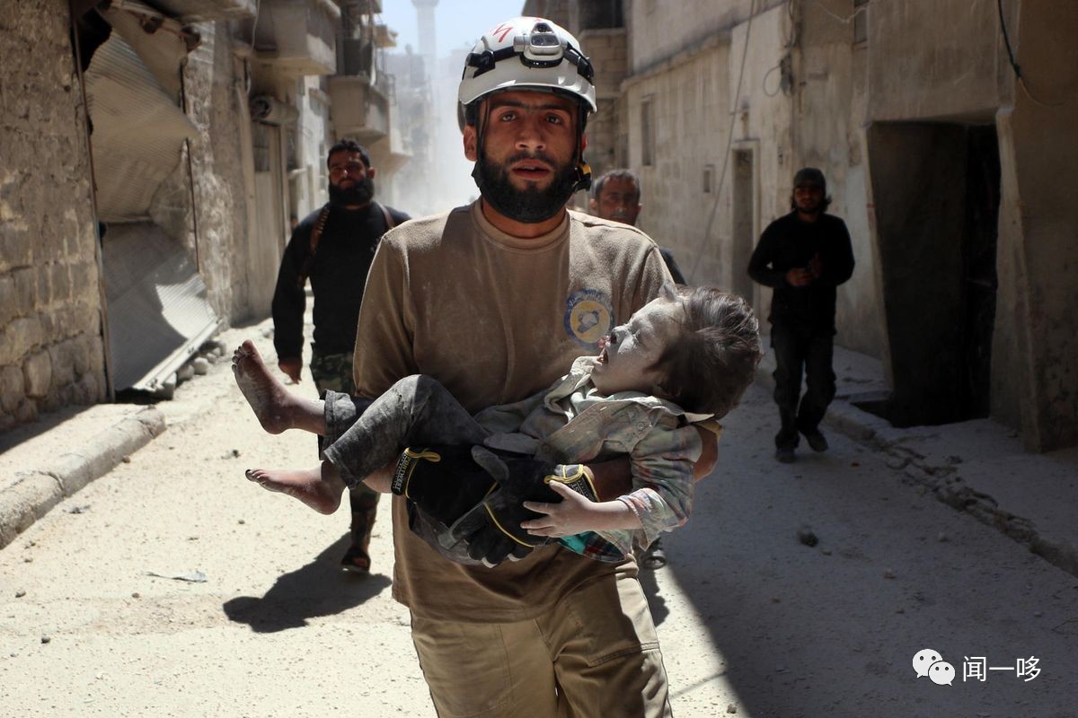每當白頭在戰場救人,在恰好的時間、恰好的地點總會恰好出現一位攝影師。構圖一貫的經典:戰火、廢墟、無助的兒童、白頭盔天使。