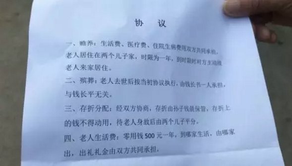 至於之前兩個姑子説自己想要老太太生活費,這純屬子虛烏有。幾方就老人的後續贍養問題,草擬了一份協議。
