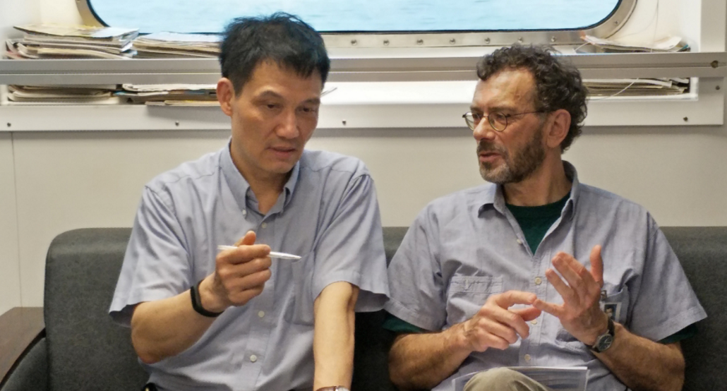 在“決心”號大洋鑽探船上,中外科學家進行研討
