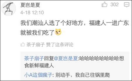 “廣東人吃福建人”的段子讓大胡建人瑟瑟發抖。