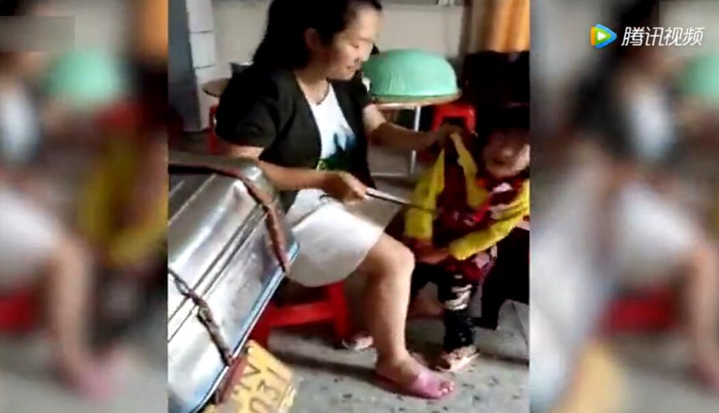 有網友發微博稱,目擊者拍攝的現場視頻顯示,在室內,一短髮女子坐在凳子上不停踢一個白色蛇皮袋,袋子裏有人在掙扎並不斷傳出孩子的哭聲,隨後短髮女子將蛇皮袋轉過來並紮緊;剪輯拼接在一起的另一段視頻中,一名相對年輕的長髮女子抓着一名女孩並不斷用棍抽打其身體。澎湃新聞看到,視頻中無法判斷蛇皮袋裏的孩子就是此後被抽打的女孩,但兩段視頻的背景顯示為同一室內。