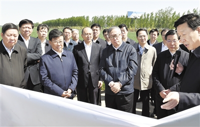 4月18日,天津市委書記李鴻忠,市委副書記、市長王東峯一行在省委書記、省人大常委會主任趙克志,省委副書記、代省長許勤陪同下到我省考察雄安新區規劃建設。記者 郭昭 攝