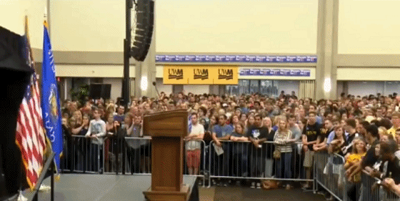 而2015年再度宣佈參選後也發生了類似的情況。當年9月希拉里在威斯康星大學密爾沃基分校舉辦競選集會,就在希拉里走上講台前……