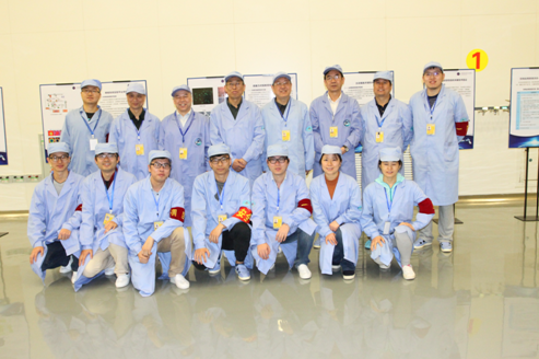 後排左起:魏廣東、何振輝、李緒志(空間應用系統副總師)、趙光恆(空間應用系統總師)、劉秋生(項目主任設計師)、曲風(空間應用系統副總調度)、吳清才(空間應用系統副總質量師)、謝騰;