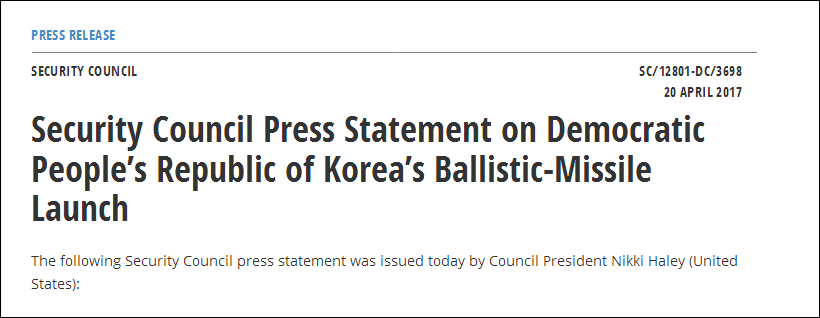 聲明稱,朝鮮近期發射導彈的活動嚴重影響半島局勢穩定,公然違反安理會有關決議規定的國際義務,安理會成員對此感到極度憂慮。安理會要求朝鮮立即停止違反安理會決議的進一步行動,充分履行決議規定的義務。