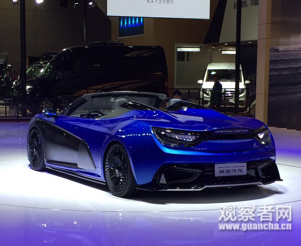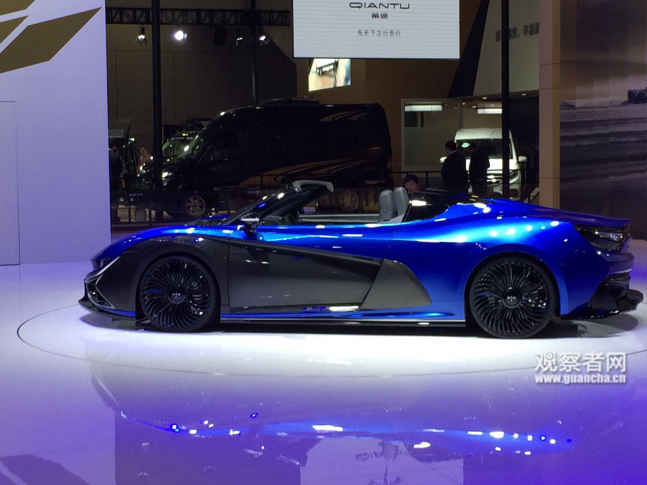 放在前台展覽的是一台K50藍色敞篷雙座跑車。外觀是非常好看的流線型,非常符合前途的標誌,如同蜻蜓一般優雅輕盈。據新華網報道,前途的母公司長城華冠就是以“汽車整車設計研發服務”起家,現在是擁有300多項專利的新能源汽車製造商。K50“吸睛”的外觀也是長城華冠的長處。