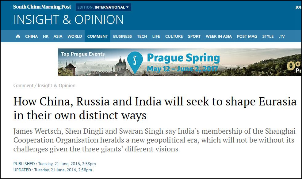 報道還援引一些俄羅斯外交分析人士的話稱,俄羅斯擔憂中國在中亞和上合組織影響力的不斷擴大,希望能借擴充削弱中國影響。因此俄羅斯積極推動本來不太積極加入上合組織的印度成為正式成員,期望依靠印度來平衡中國,而中國則利用巴基斯坦來制約印度。
