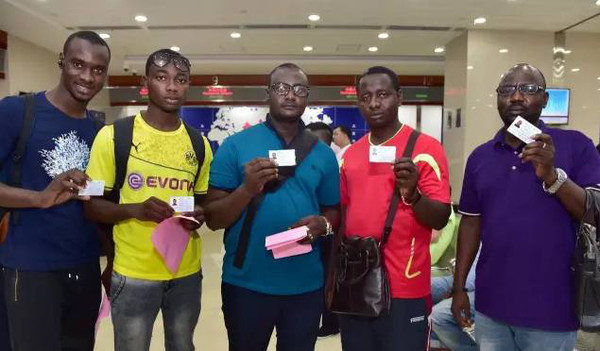 2016年,義烏市對外貿易服務中心辦事大廳內,市民卡發放中心工作人員對15名常駐義烏外商發放了首批外籍商友卡,他們將享受義烏市民的同等待遇。