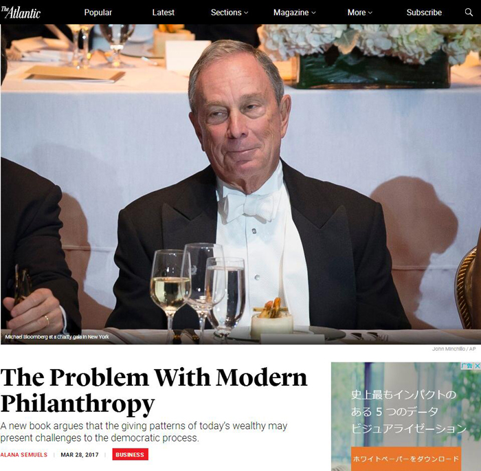 美國《大西洋月刊》3月28日文章:《現代美國慈善事業存在的問題》(圖中人物為近年在環保領域捐贈額高達8000萬美元的美國紐約市前市長邁克爾·布隆伯格)