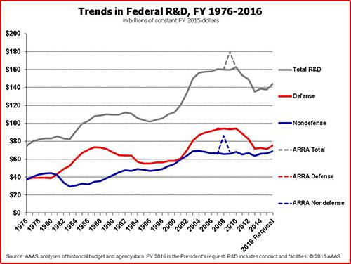 幾十年間,國際範圍內科研實力的格局出現了不小的變動。在20世紀80年代,美國、蘇聯、西歐的科研實力呈三足鼎立,中國還排不上座次。20世紀90年代以後,蘇聯解體導致其科研體系迅速崩潰,只剩下美國和歐盟這兩大巨頭,美國的科研實力略勝一籌。待到2010年以後,美國仍然佔據老大地位,而歐盟因經濟疲軟出現了科研實力的萎縮,從航天科技領域可以明顯看出來;實現了經濟騰飛的中國則成為後起之秀,實力直逼美國和歐盟。美國減少科研經費之時,正是中國在科研實力上實現加速趕超的絕佳良機。