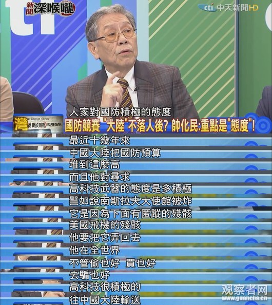 前“立委”帥化民説,我們從美國那兒買了二三十年的垃圾卻不自知,而且台灣的“國防預算”每年都在下滑,怎麼下水?
