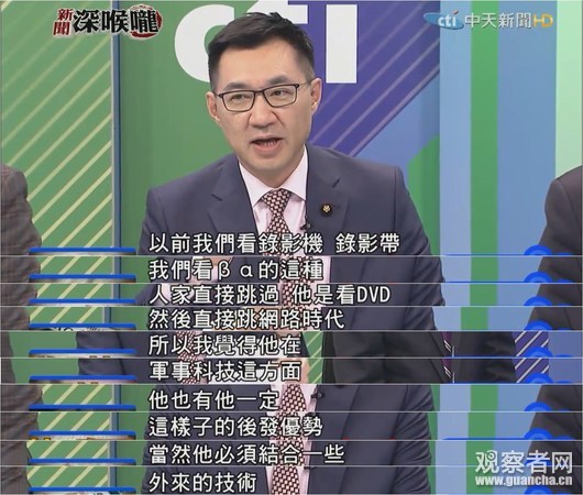 國民黨“立委”江啓臣也認為,大陸在汽車、工業、互聯網等方面都有後發優勢,軍事科技也是。