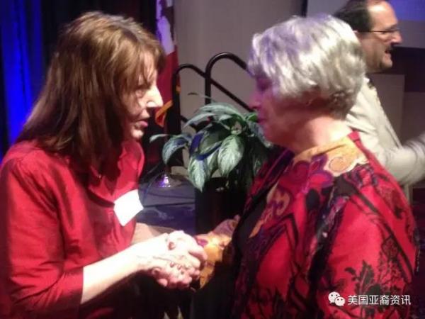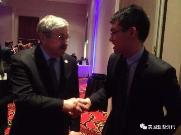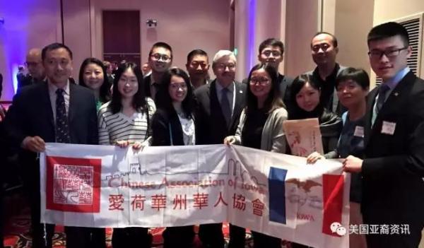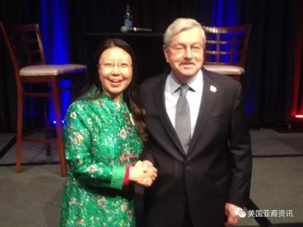 前來參會的還有愛荷華州華人協會執行主席燕曉哲先生帶領的十多名華人團隊(見上圖)。對於每個華人,布蘭斯塔德州長都熱情地伸出雙手,用中文問候“你好”,他的夫人克瑞斯汀•布蘭斯塔德(Christine Branstad)也身着喜氣洋洋的紅色唐裝,夫婦倆很有中國味。