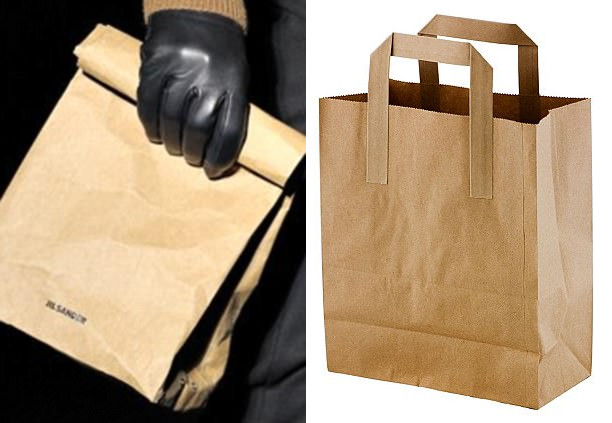還有更極端一點的例子——吉爾·桑達 (JIL SANDER) 2012 秋冬男裝系列曾推出售價1854元的牛皮紙袋。有人買嗎?