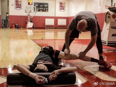 30日凌晨,火箭官方社交媒體發佈了周琦在豐田中心訓練的照片。