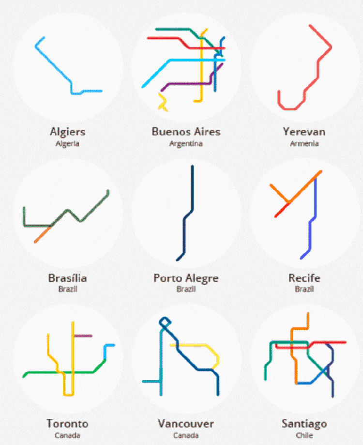 220個城市的簡化地鐵圖,看看你能發現它們各自的什麼特點?