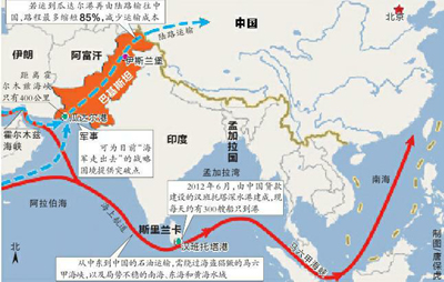 瓜達爾港在我國軍事安全方面的意義因此不容忽視。因靠近我國從中東的海上石油運輸通道,這個深水港有助於保障通道的安全,還可以監視美國海軍在波斯灣、印度在阿拉伯海的動向,以及美印在印度洋的海上合作。[20]